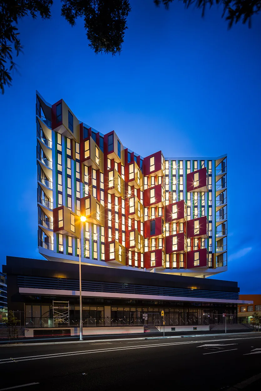 This unique development pushes the boundaries of traditional architecture, with a stunning facade created from fresh angles, bright colours, and elegant lines.